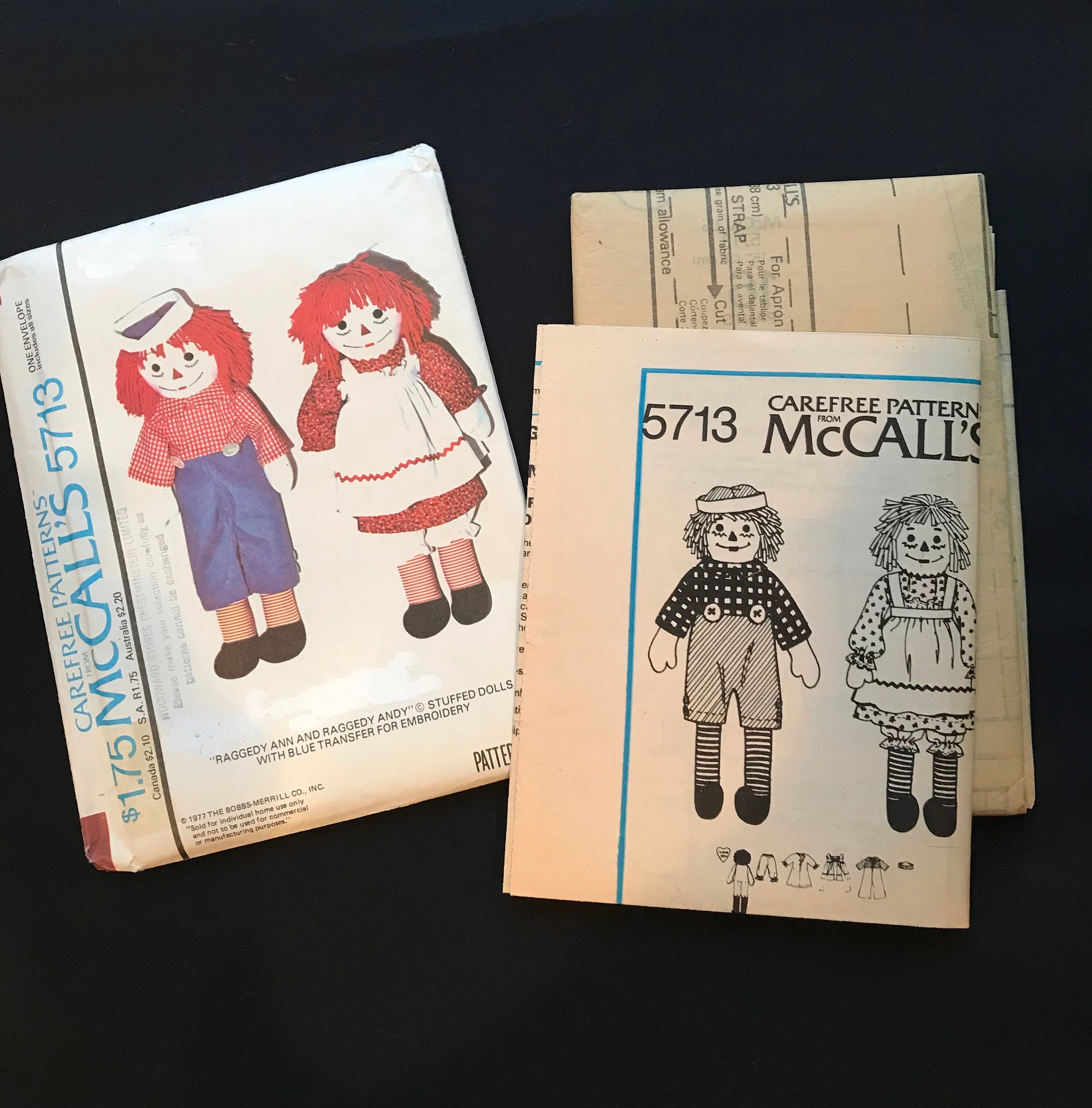 Amazon Com Vintage 1977 Mccalls Sewing Pattern 5713 Raggedy Ann And Raggedy Andy Dolls And Clothes