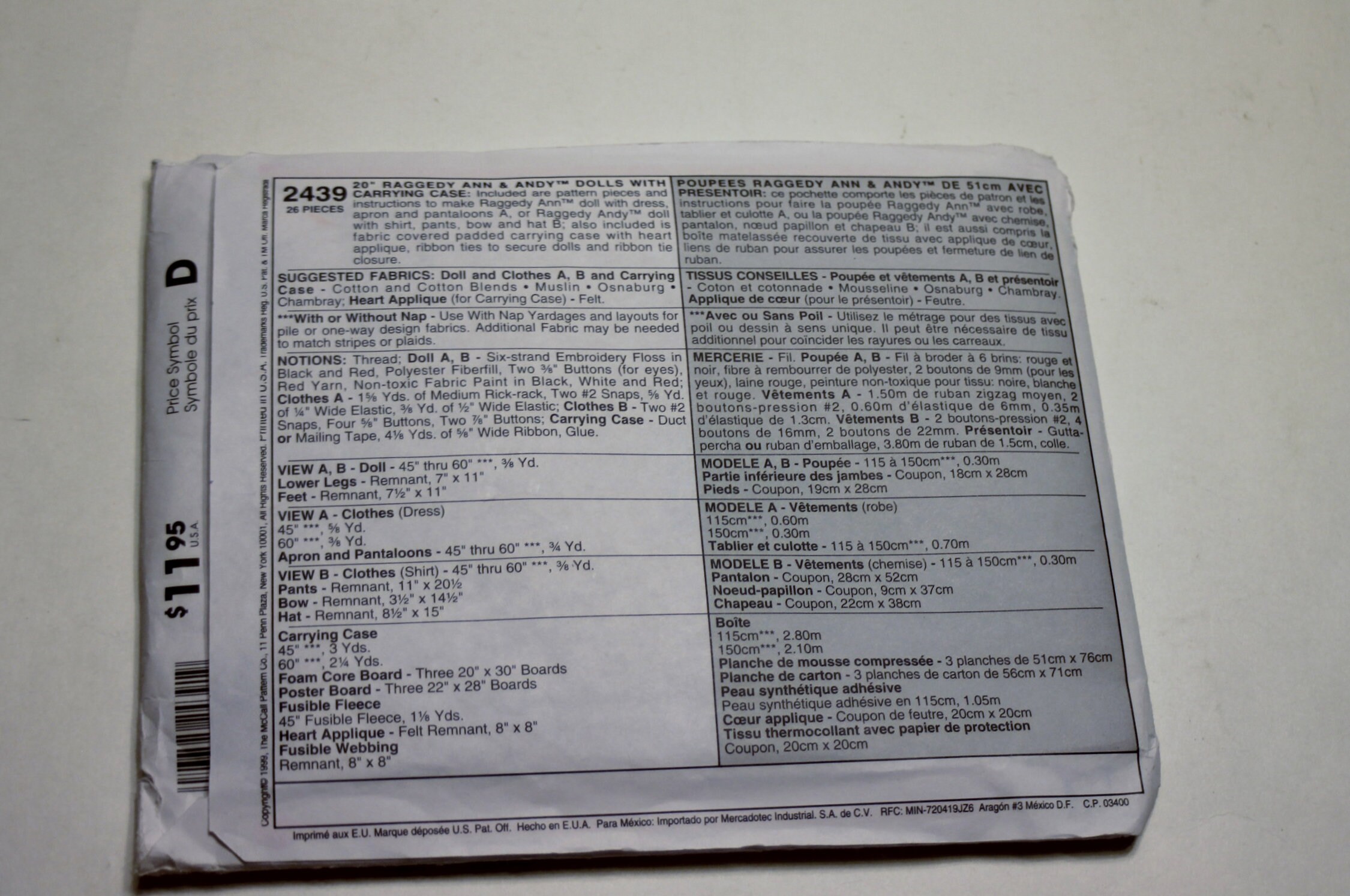 Mccall S 2439 Raggedy Ann Andy Dolls With Carrying Case Etsy